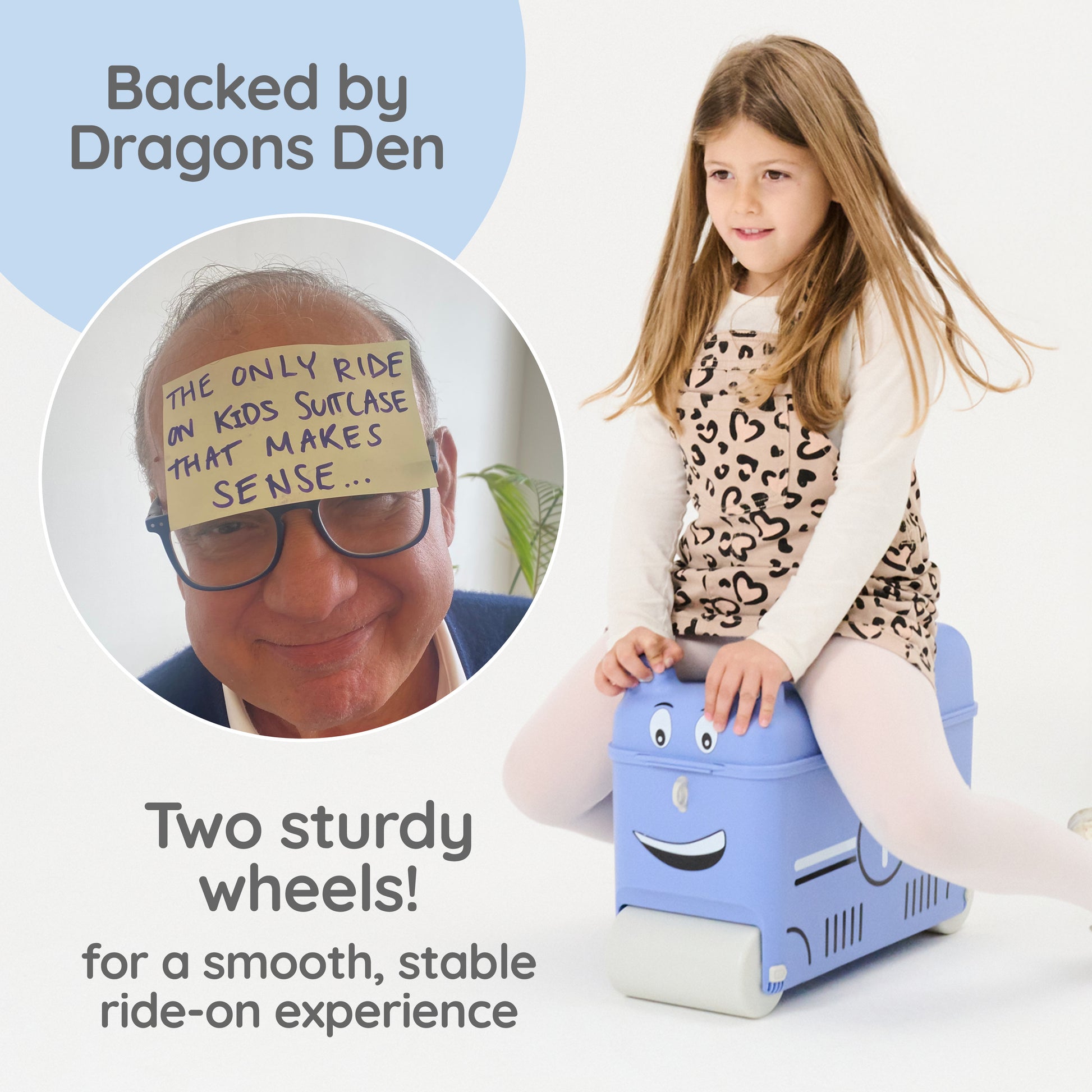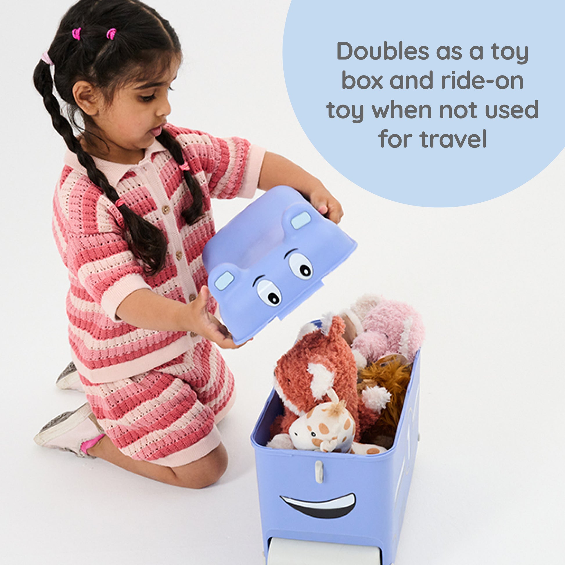 Fast, fun and built for the journey, this ride-on suitcase keeps kids toys & snacks within easy reach under their feet. Designed to make travel easier for them and for you.